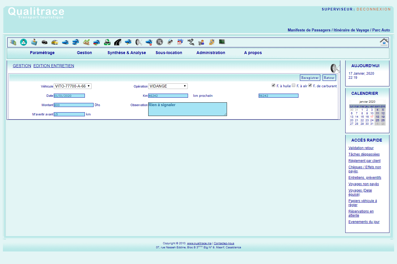 Gestion des entretiens véhicules : vidanges, plaquettes, pneus, répérations...