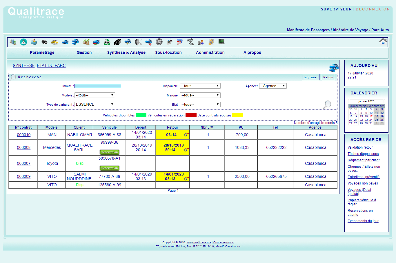 Etat de parc dynamique résumant la situation réelle à chaque instant de votre parc automobile