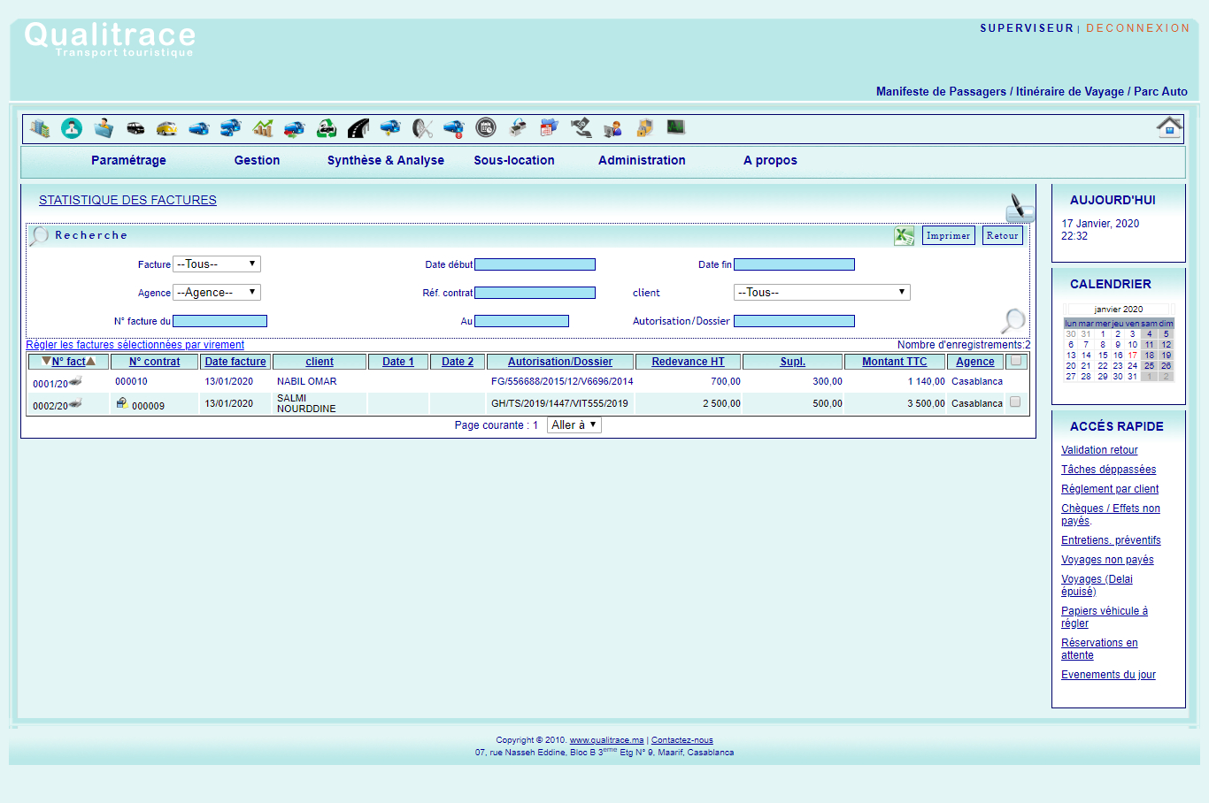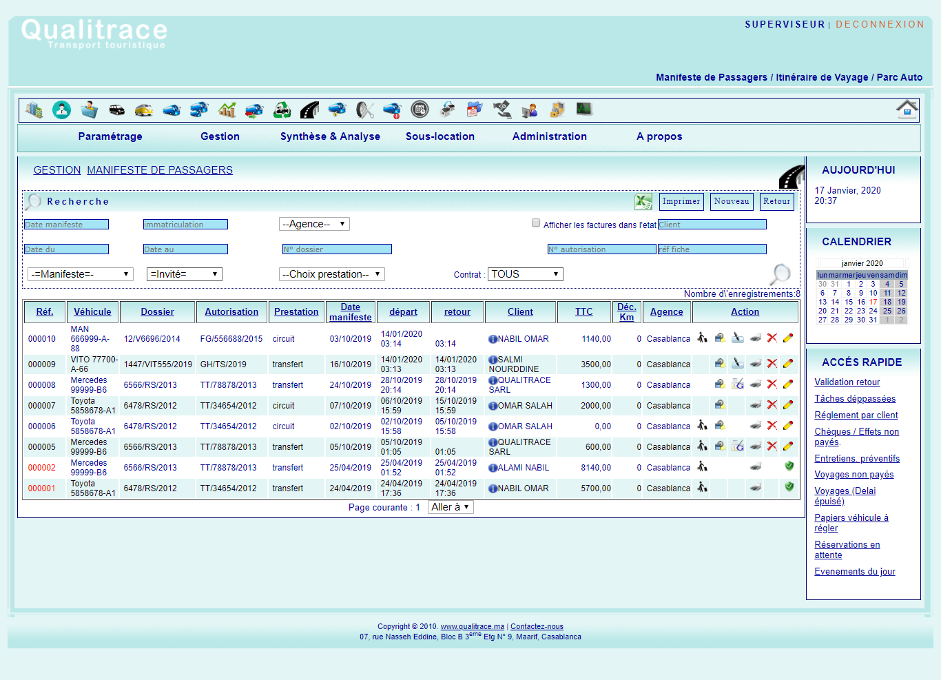 Système multi-critères de recherche par : réf manifeste, véhicule, client, entre date location, statut location ...