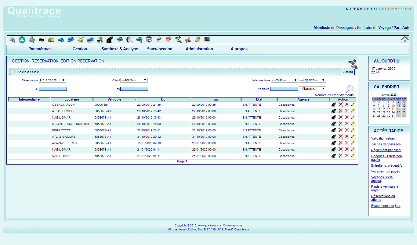 Formulaire de suivi de reservations en attentes, passées et clôturées