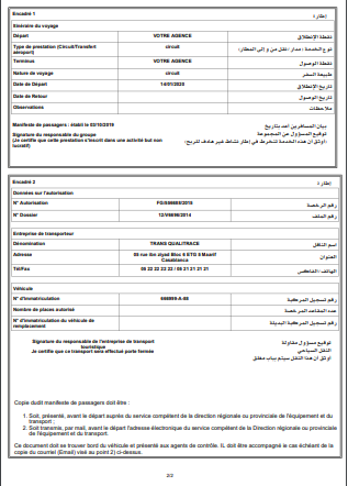 Imprimer automatiquement manifestes de passager touristes résidents et non résidents