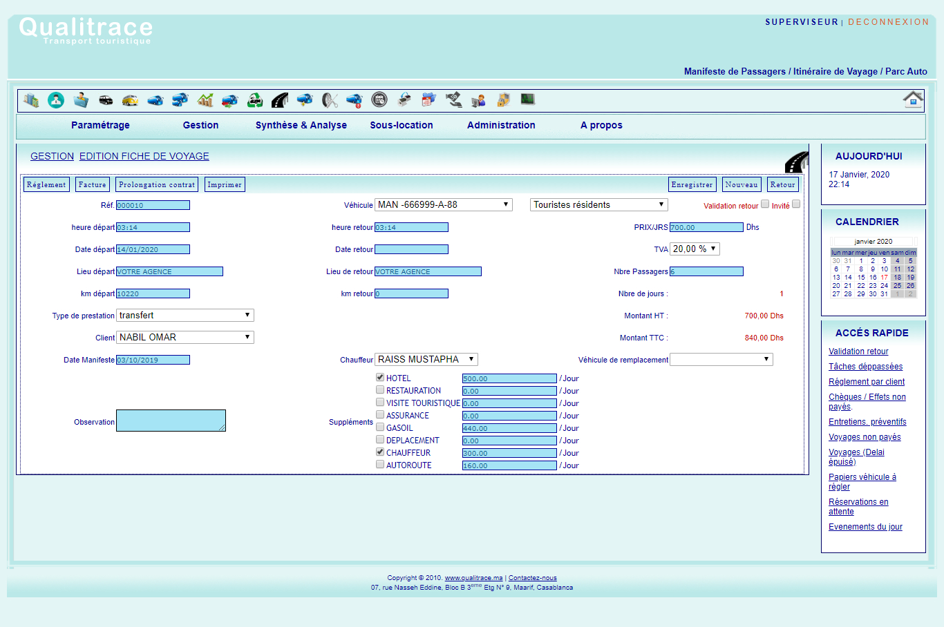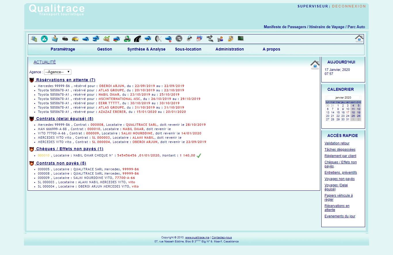 diagnostiquer les manifestes , réglements , entretiens ... qui annuler, valider le retour , changer les prix, les dates ...