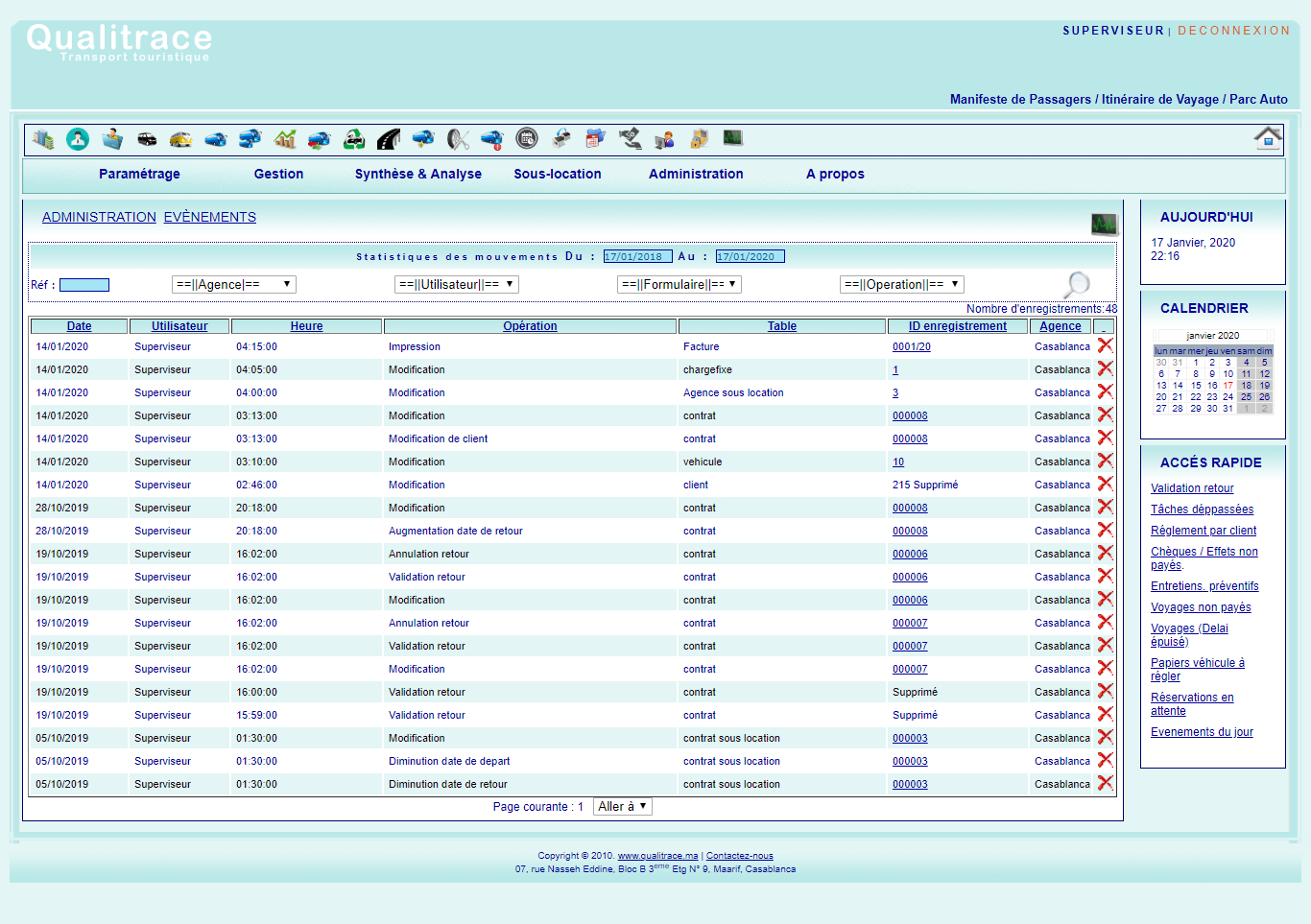 Traçabilité des évènements des utilisateurs sur le logiciel